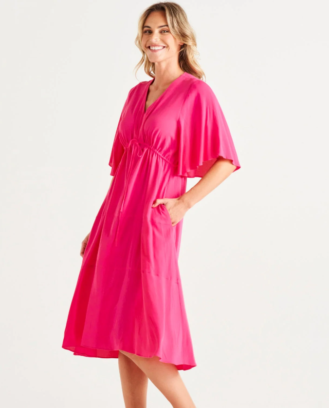 Elevate your style effortlessly with the Betty Basics Saint Lucia Dress! Designed for comfort and charm, this dress boasts a relaxed shape that's perfect for any occasion. The empire waistline with a drawstring adds a touch of uniqueness, while the elbow-length flutter sleeves exude a playful elegance. And guess what? Pockets for added convenience! Step into a world of fashion-forward relaxation with the Saint Lucia Dress, where comfort meets chic in the most delightful way. Upgrade your collection and embrace a versatile piece that's as stylish as it is fun!