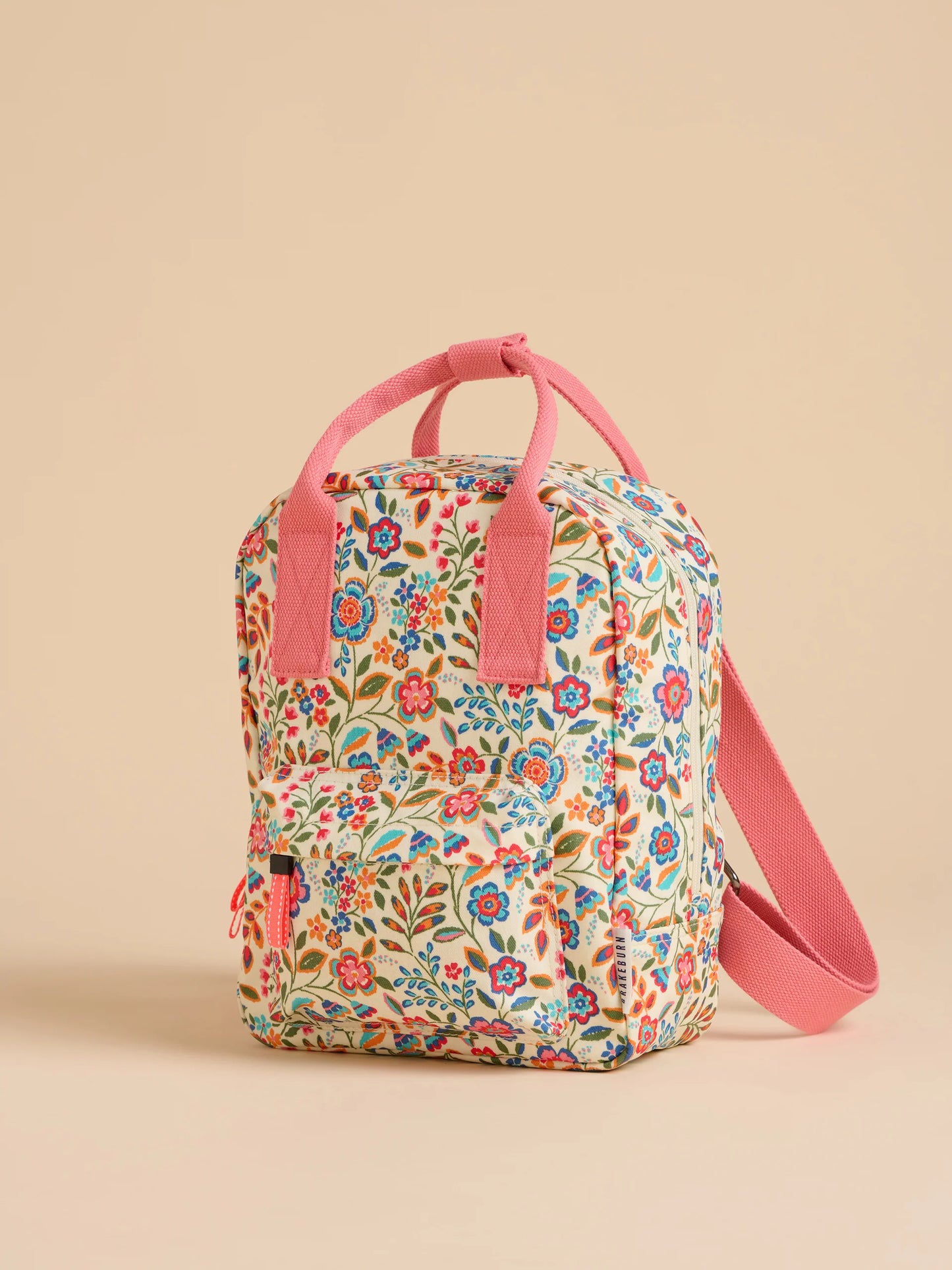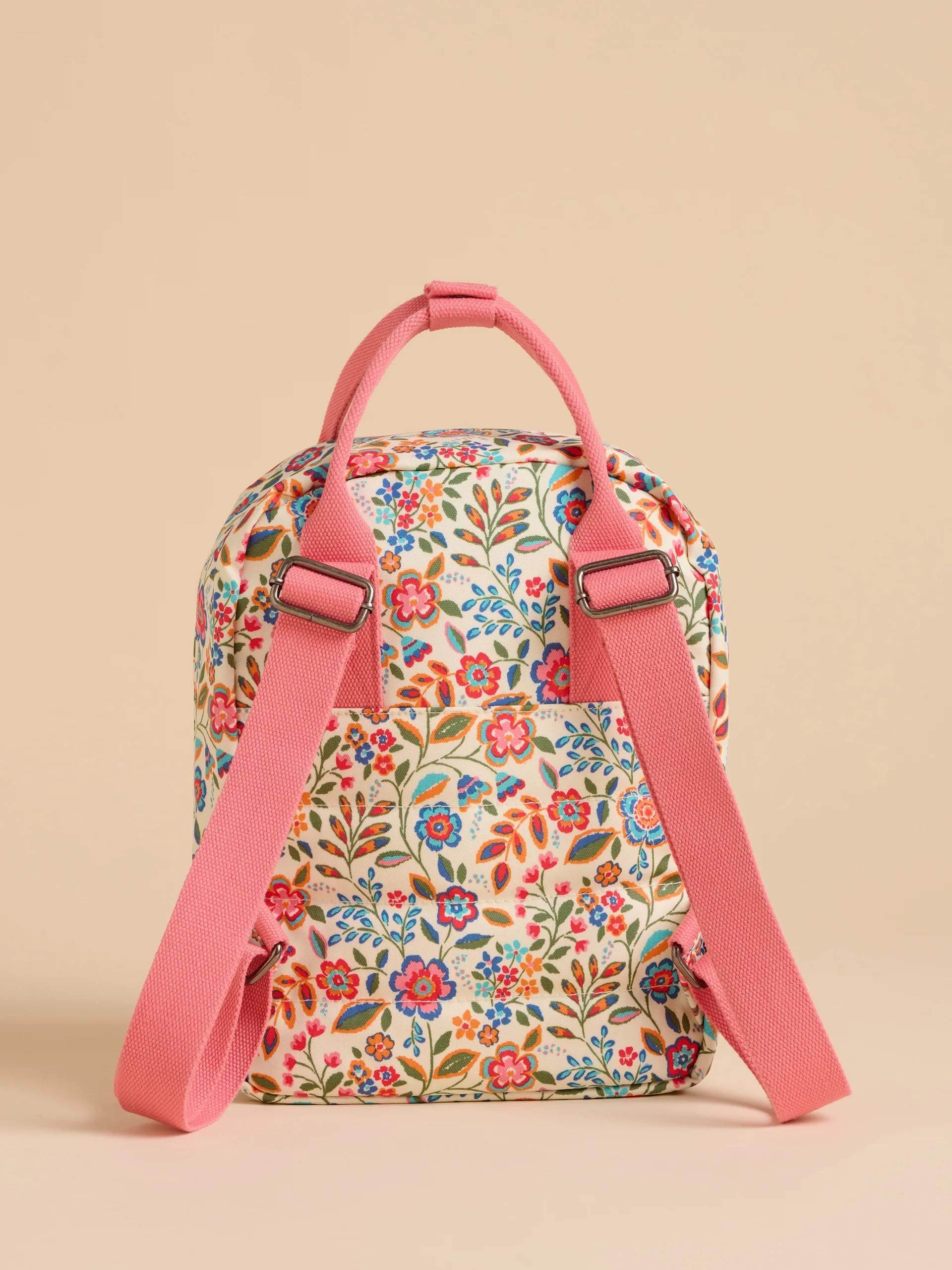 Features include padding on the back panel, grab handles, adjustable straps and a front zip-up pocket. A divided padded section inside will hold a tablet or small laptop, while the internal zip pocket is perfect for keys.
