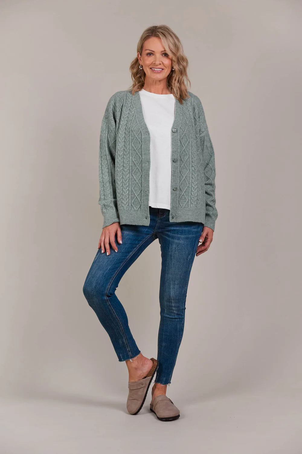 Ideal for those crisp autumn days, the Merano Crop Cardigan is a cosy, stylish layer to throw over any outfit. Made from a luxurious wool blend, this cardigan has a flattering V-neck and a charming cable-knit pattern, secured with a four-button closure. It's the perfect casual outerwear for relaxed days, adding a touch of texture and warmth. Drape it over your shoulders during the warmer parts of the day for a chic, layered look, then button it up when the air turns cooler.