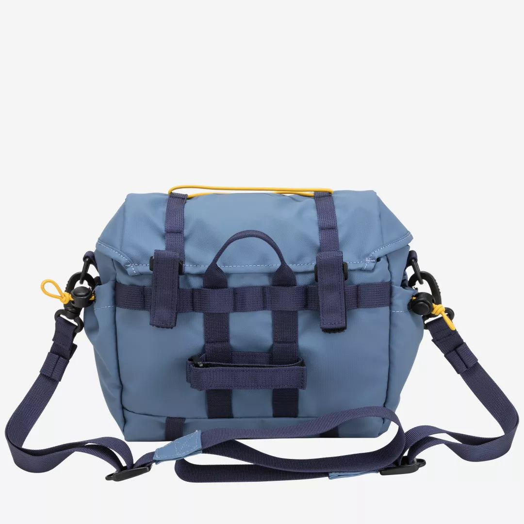 Designed for both bike and foot travel, the Oaken features detachable handlebar and head tube straps for secure bike mounting. When off the saddle, the adjustable crossbody strap provides a comfortable carry, and the top grab handle ensures easy pick-up. Side slip pockets, daisy-chain webbing, and an adjustable front elastic cradle allow for extra storage, while under-bag adjustable straps provide even more carrying capacity for bulkier items.