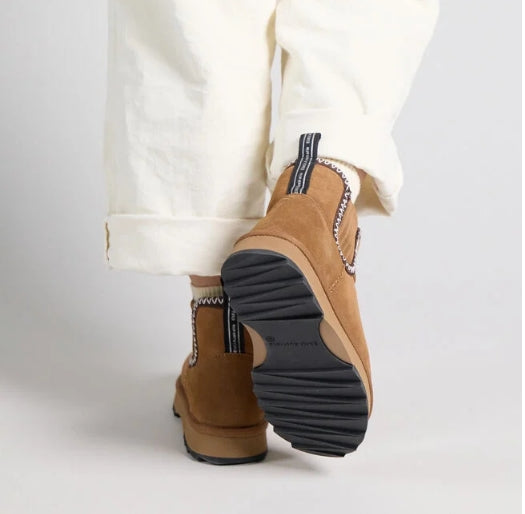 Don’t be fooled by the size—this little boot has big energy. With statement Aztec-inspired embroidery, water-resistant Australian sheepskin and a chunky Sharky sole, it’s built for comfort, edge, and that effortless pull-it-on-and-go lifestyle. The micro cut keeps things modern, the pull tab makes life easy, and the whole vibe? Pure EMU attitude. Cozy never looked this confident.