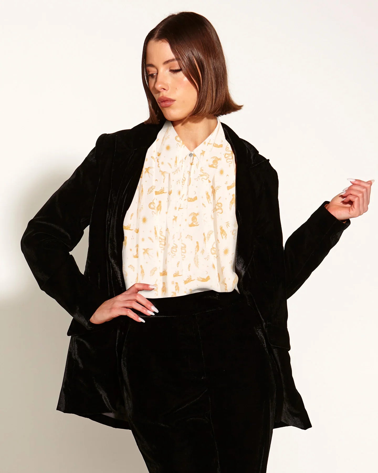 Step into the spotlight with the Mustang Sally Velvet Blazer. Tailored to a regular fit with long sleeves, this Jacket exudes timeless sophistication. Featuring front functional flap pockets, it combines style with functionality effortlessly. Elevate your ensemble with this hip-length piece, crafted to add a touch of glamour to any occasion.