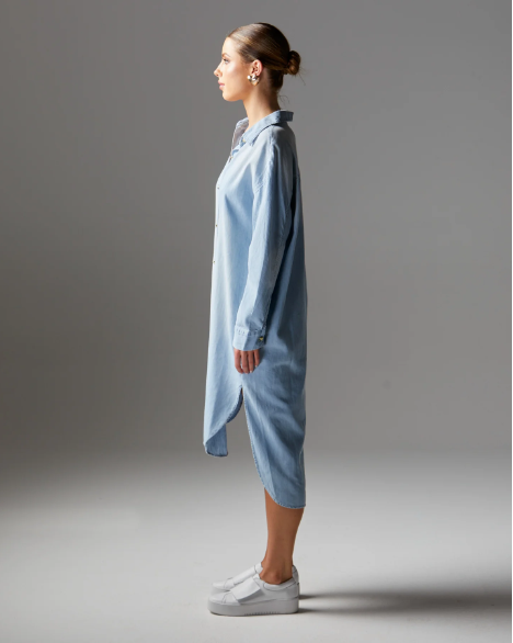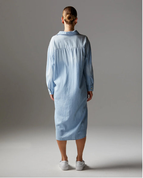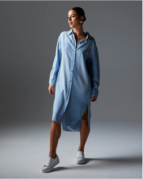Elevate your wardrobe with the Flight Shirt Dress from Fate+Becker. Designed in a relaxed fit, this collared dress features a chic midi length and a curved hem with side splits for a touch of modernity. Perfect for effortless styling, whether worn alone or layered with accessories, this dress offers comfort and sophistication for any occasion.