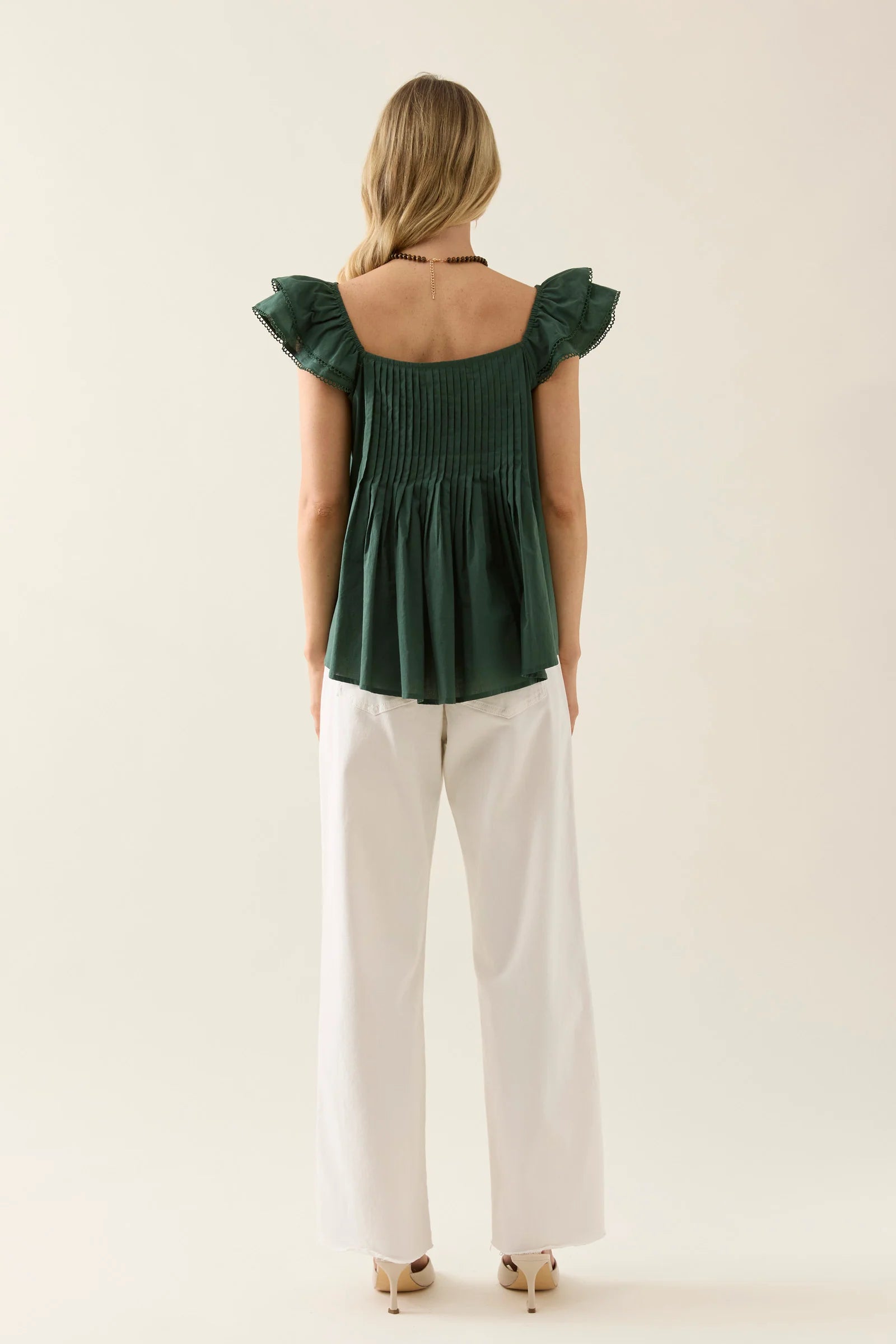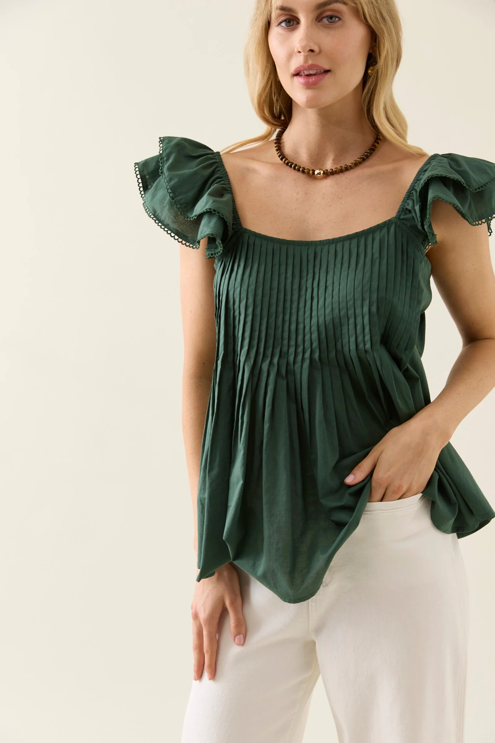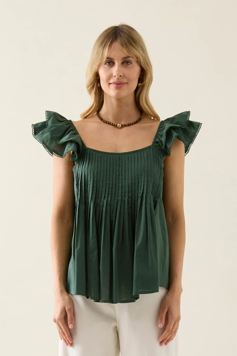 Crafted from lightweight cotton voile, the Aurora Frill Tank features soft frill sleeves with cotton trim and pintuck detailing through the front and back. Feminine and fluid, it offers an easy drape and flattering neckline.