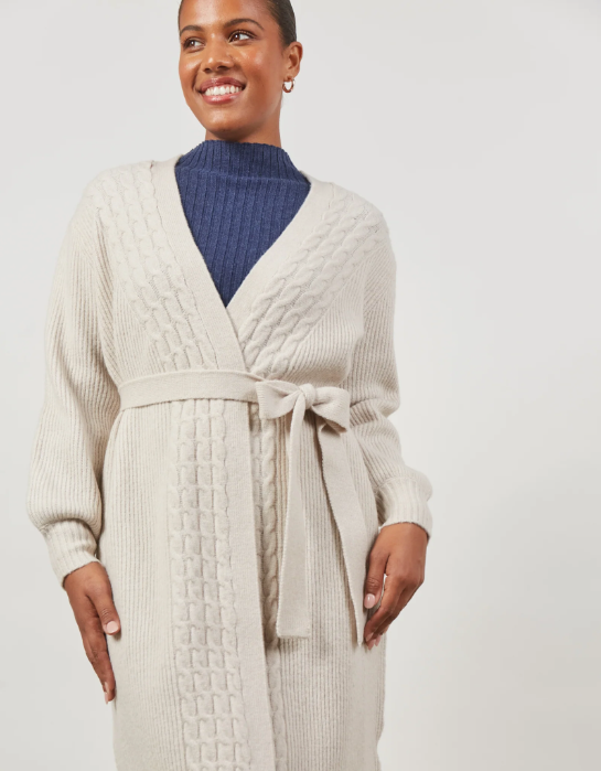 The Renew Cardigan, crafted with wool and recycled polyester, seamlessly blends comfort and style with its easy-wear design and shape-retaining stretch. Its attention to detail shines through in the longline silhouette, offering the ideal mix of coverage and streamlined elegance. The self-fabric belt adds a practical touch, while the woven cable design brings warmth and dimension to your outfits, making it an indispensable piece you won't want to leave the house without!