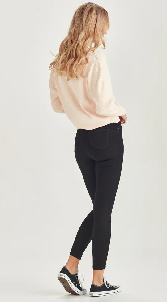 In an ultra stretch denim with 4 way hold, stretch and recovery technology. A higher stretch fabric that holds & enhances your shape where it needs to.