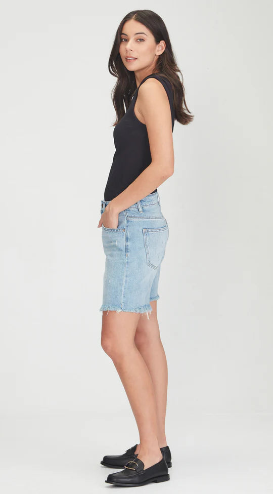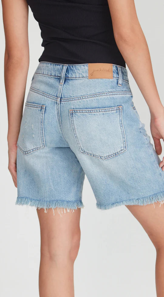 Mid waisted denim shorts with raw hem and the perfect ''cut off old jeans'' look.