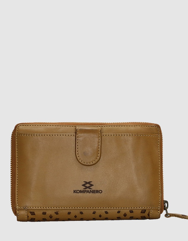 The Ollie wallet from Kompanero is designed with 20 card holders, a zipped coin compartment, a note compartment and a pocket on the back perfect to hold your phone.She is securely fastened with a zip around closure.