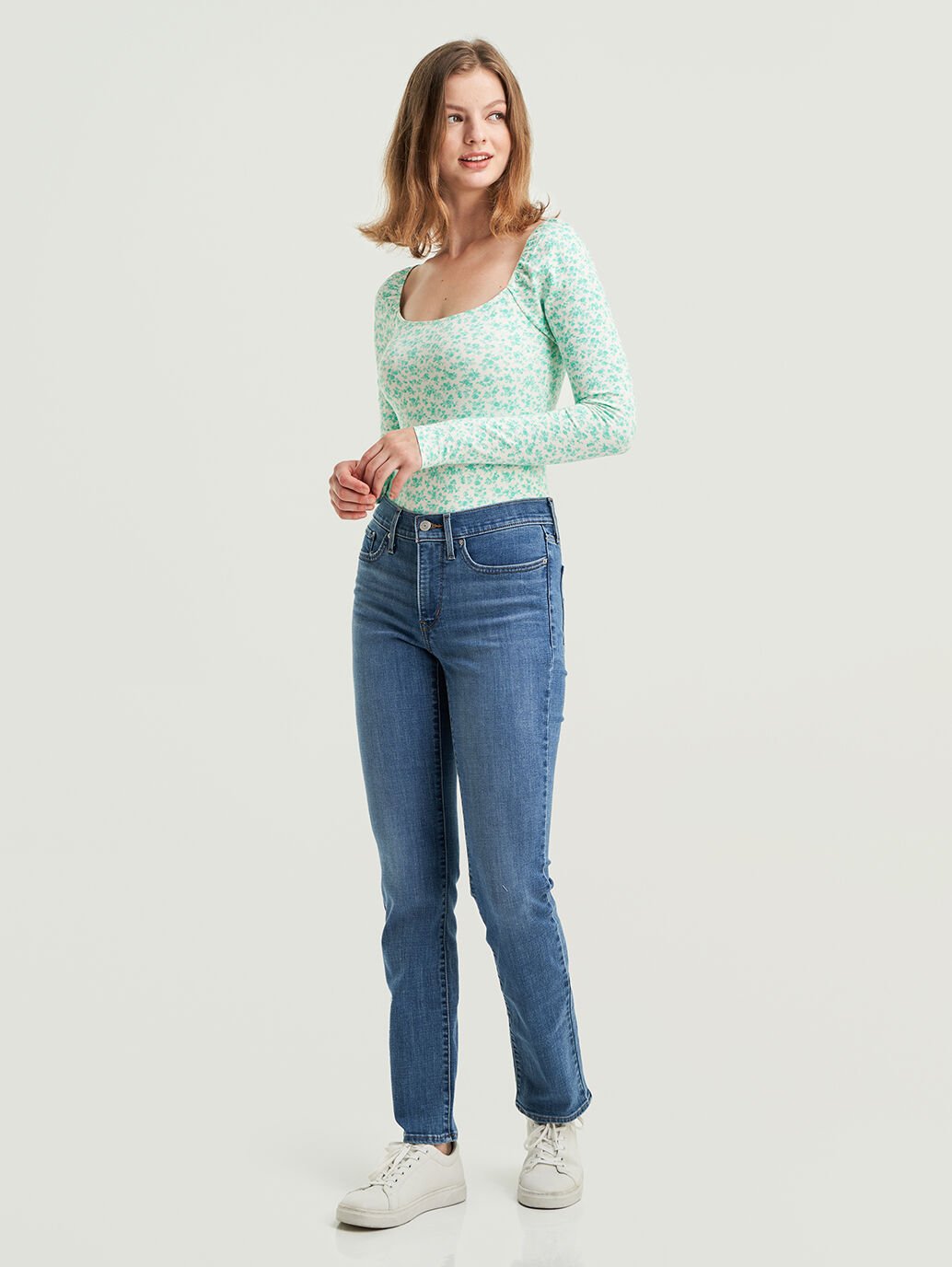 A flattering straight jean with added stretch for all-day comfort, built to contour curves, lift seat and lengthen legs to help you look and feel your best. Made with an innovative tummy-slimming panel. Levi’s® Sculpt with 4-way stretch is an innovative all-direction stretch that delivers extra mobility and comfort. 12.3 OZ Denim.