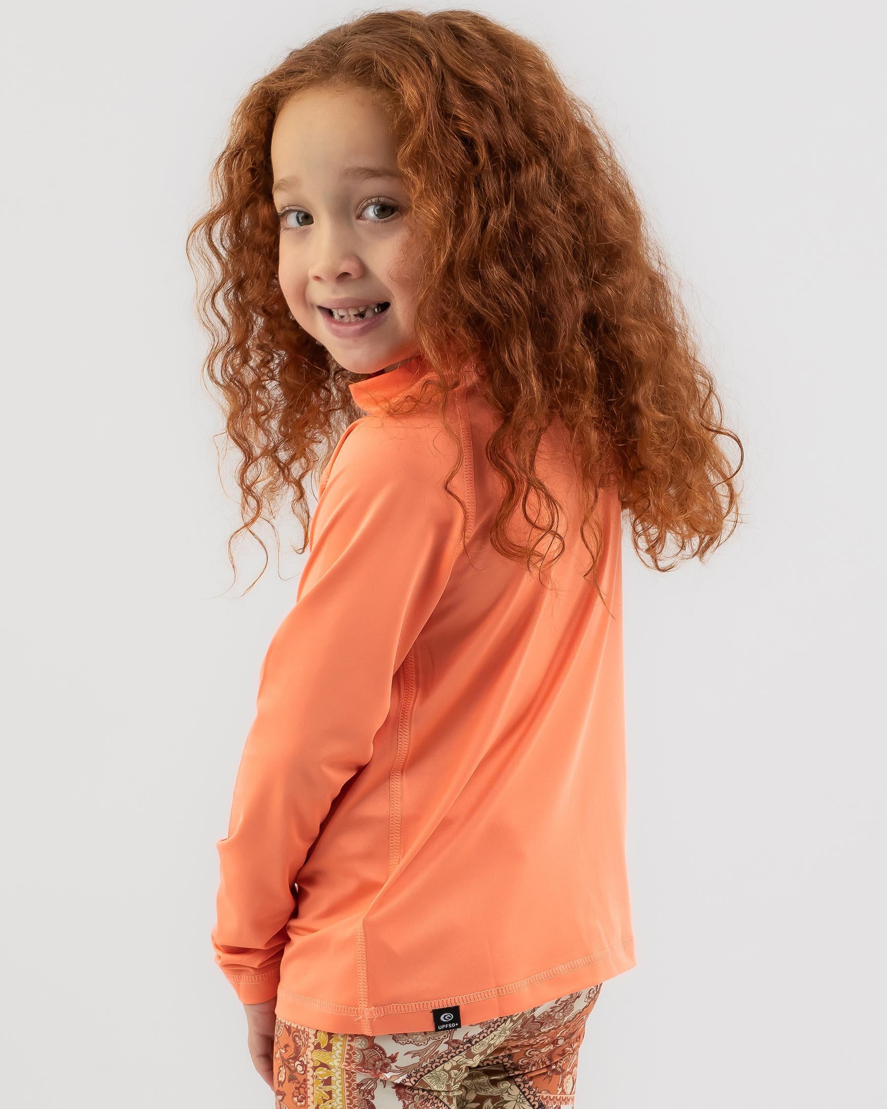 The Rip Curl Toddlers' Long Sleeve Script Rash Vest is perfect for keeping your little one protected at the beach or pool. Features UPF 50+ fabric, high neck line and long sleeves.