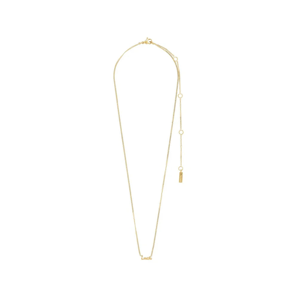 Reflect your love, and wear your mantra with pride! With your new signature piece, you get a sleek, silver or gold-plated necklace with a small pendant in cursive script with the word 'LUCK'. A genderless piece that can be worn by anyone, and a great gift idea for a loved one. Style it solo or layer up for a personalised look, either way you choose to style the chain, measuring 38 cm + 9 cm extension chain, it's a must-have in your daily wear collection. And guess what - it's made from 99% recycled material, with care for our shared planet in mind.