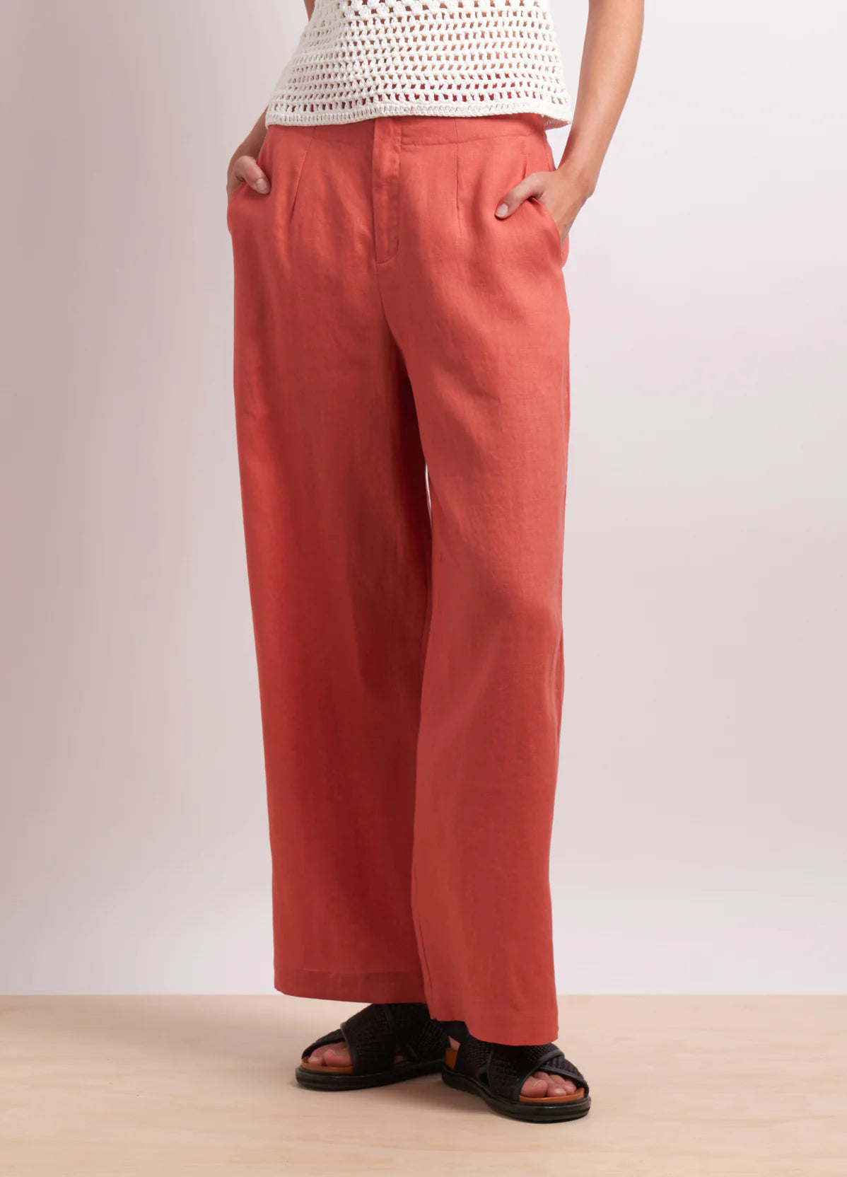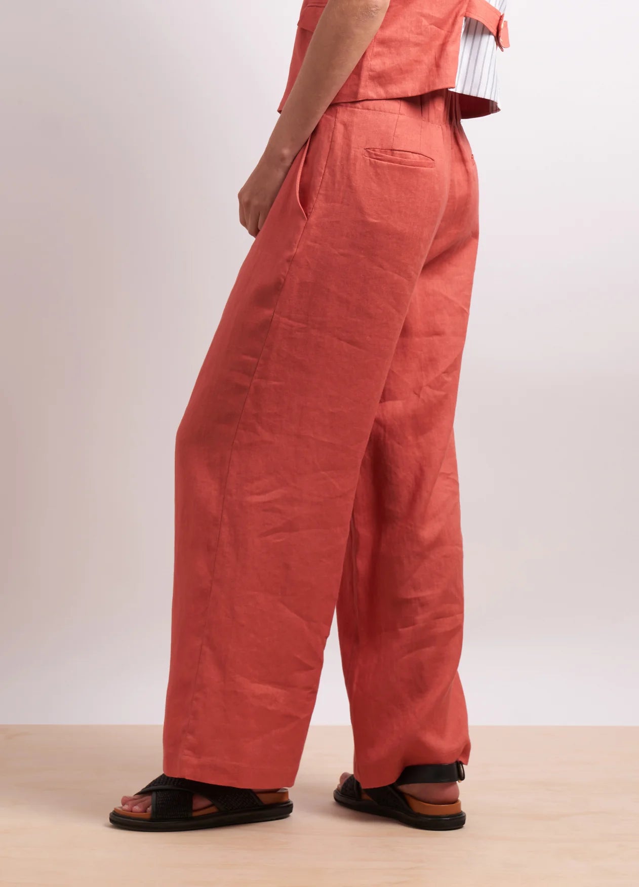 Cut from breathable 100% linen, the Highlife Pant is a relaxed wide-leg silhouette. Designed with a zip front and flat pleats, the back waistband is elasticated for comfort. This high waist, full-length style includes both front and back pockets. A polished and tailored trouser that is a smart, versatile addition to any wardrobe, it pairs back perfectly with the matching High Life Vest.
