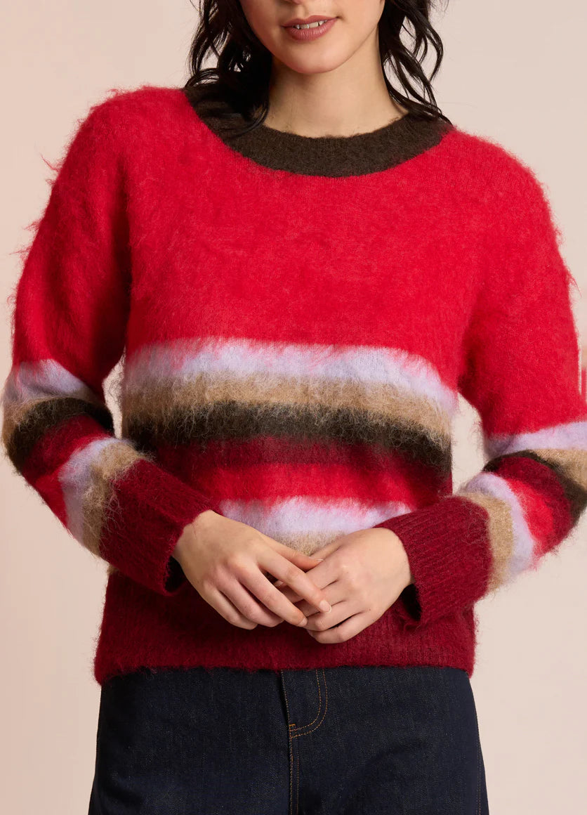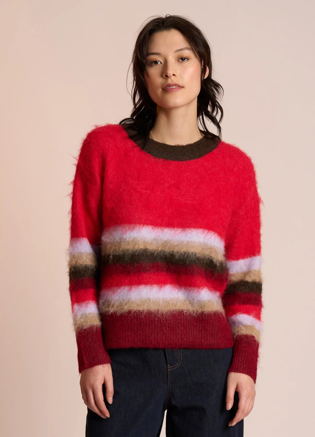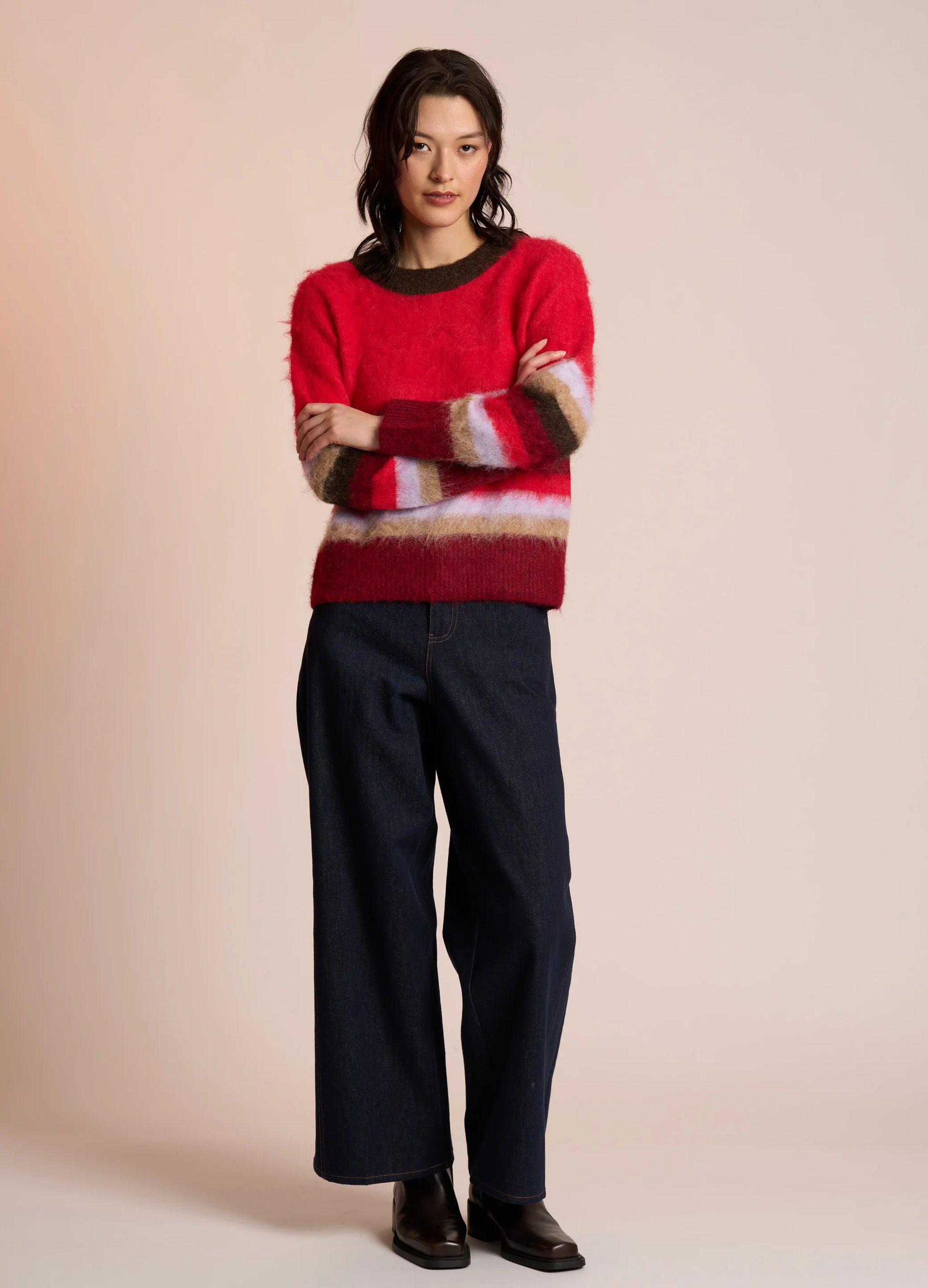 The Pop Art Jumper by Neris is a joyful, colourful knit designed to brighten cool days. Crafted from an ultra-light, fluffy fabric that feels incredibly soft to the touch, it features vibrant contrasting stripes. The relaxed fit, crew neckline, and long sleeves make it an easy, feel-good piece for everyday wear.