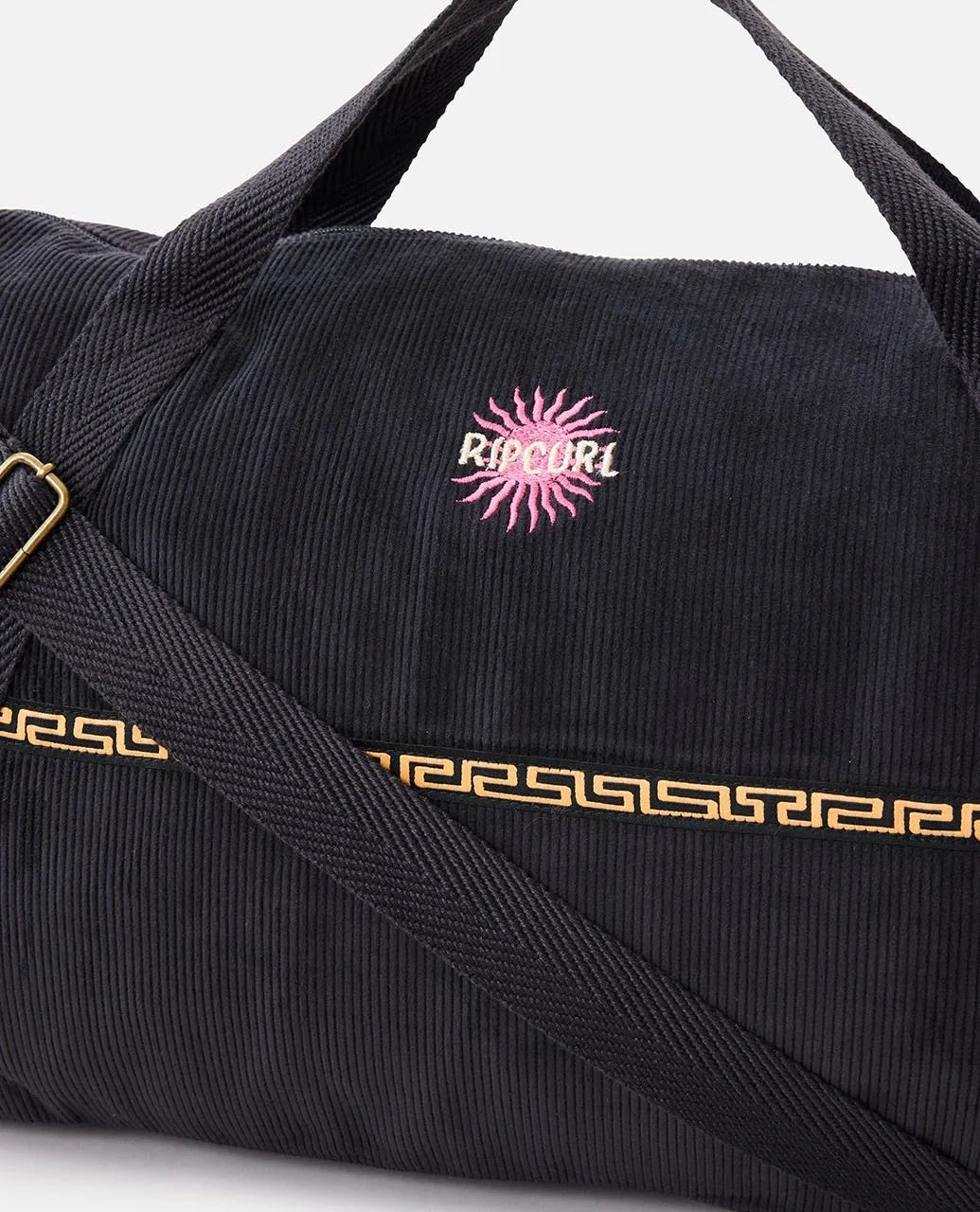 The Icons Cord 40L Duffle offers optimal space and convenience with features like zipper closure, woven taping, large main compartment, with adjustable and removeable shoulder strap. With its embroidery details and soft corduroy finish, this duffle is perfect for the overnighter.