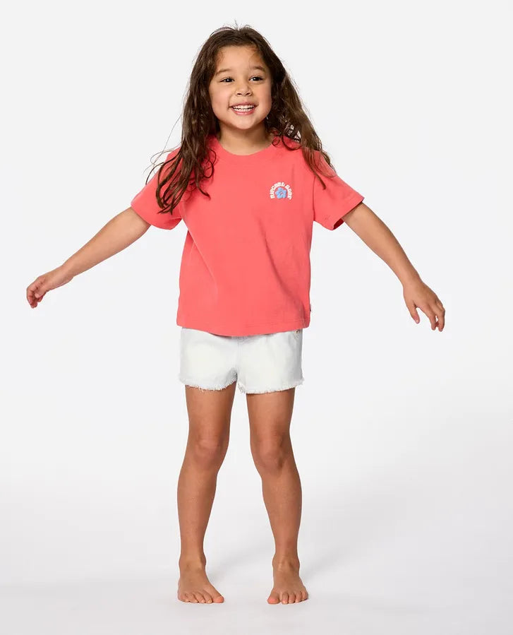 Soft and easy to wear, the Luxe Surf Tee for girls features 220G peached cotton jersey with a relaxed fit and silicon wash. Complete with front and back prints, a woven flag label, and inner neck print, it’s ready for beach days and play.