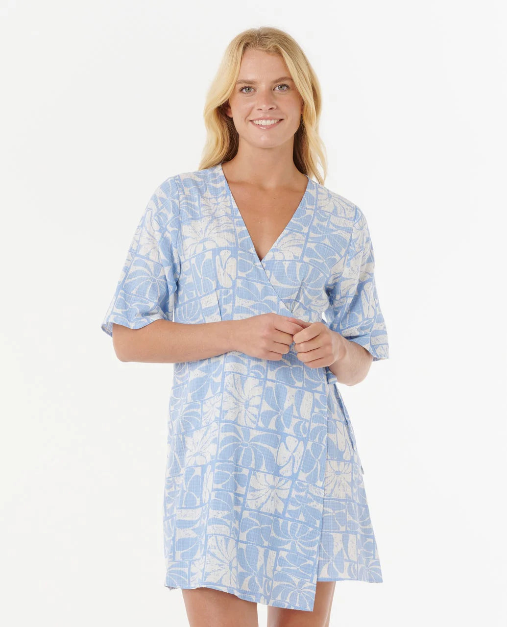 Featuring a standard fit and softener wash, the Artist Of The Search - Ty Williams Wrap Dress combines cotton and Lenzing™ Ecovero™ viscose for a lightweight feel. This dress includes an all-over yardage print, functional side tie, and metal logo trim for effortless coastal style.