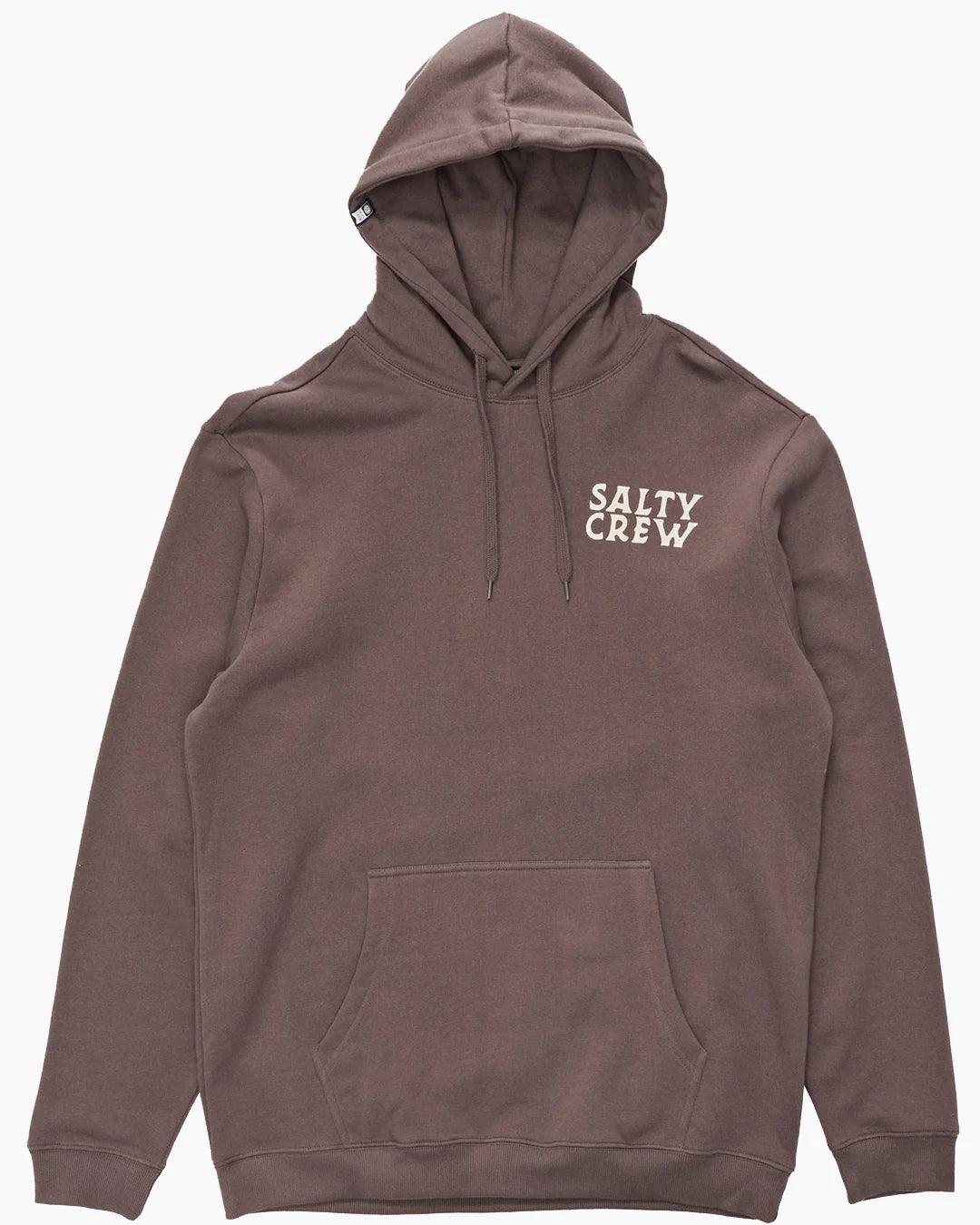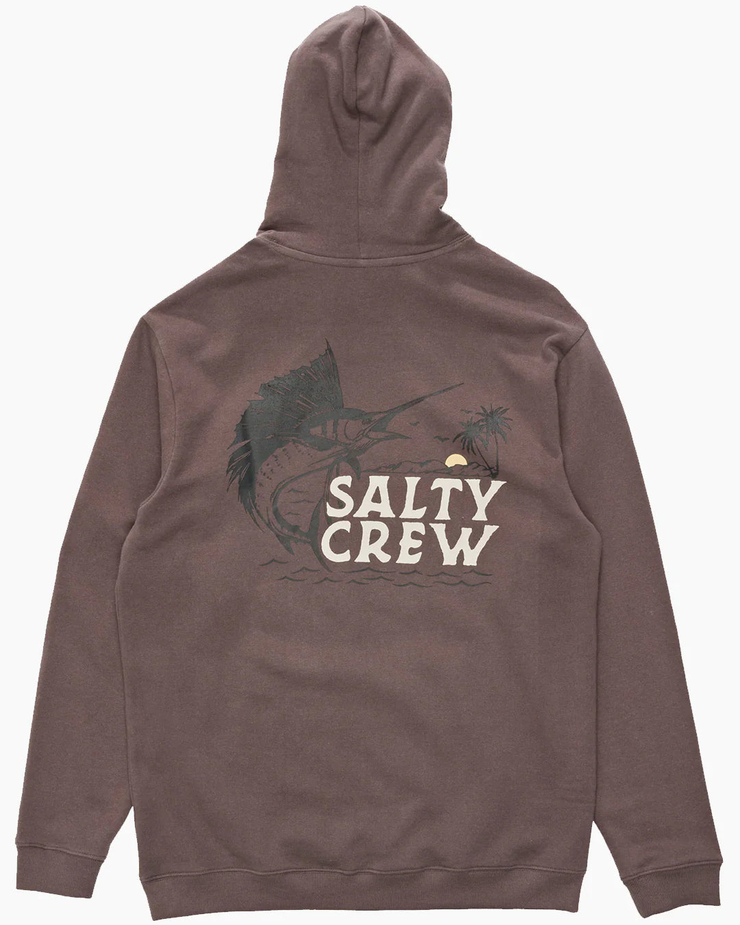 The Sailfish Fleece Hood in Port is made from our signature cotton/polyester brushed fleece, weighing 380gsm. It features a two-piece hood with an encased draw cord, rib-knit cuffs and hem, a self-fabric kanga pocket, and a Salty Crew clamp label at the hood opening. The hoodie also showcases screen-printed designs on both the front and back.