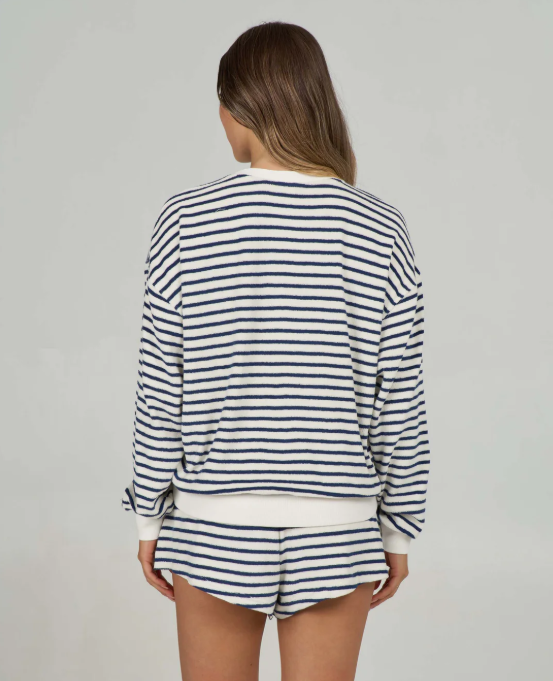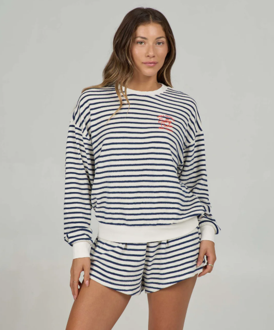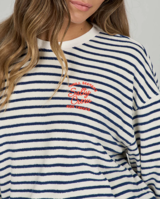 Schooner Crew in Bright Navy is made from cotton/polyester yarn dyed terry fabrication. Featuring crew neck & chest embroidery.