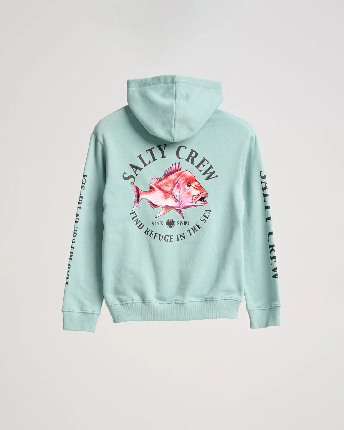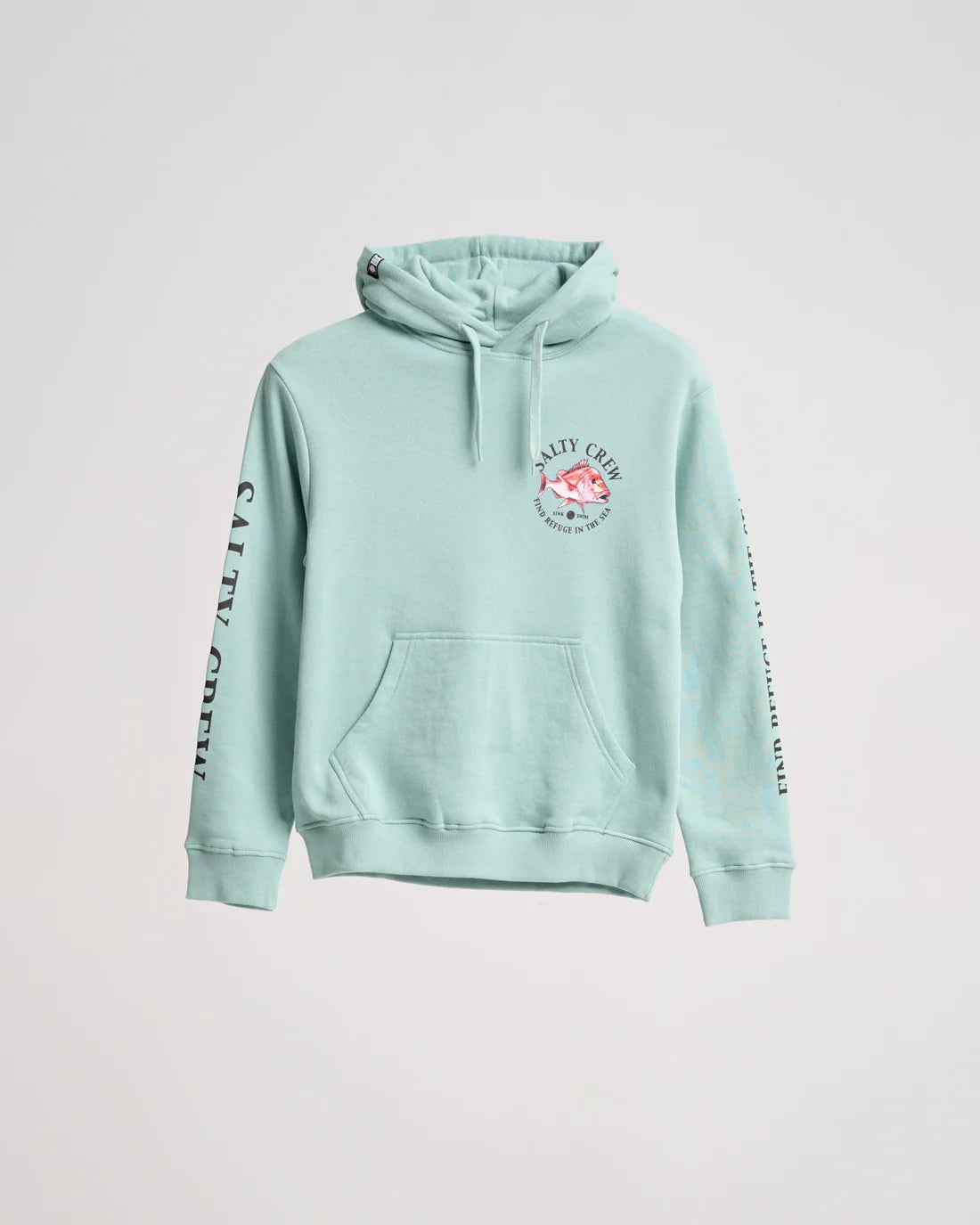 Snap Attack Boys Fleece in Mackeral is made from our signature mid-weight Cotton/Polyester Brushed Fleece, 280gsm in weight. Featuring two-piece hood with encased drawcord, rib knit cuffs & hem, self-fabric kanga pocket & Salty Crew clamp label at hood opening. Screen Printed front chest and back prints.
