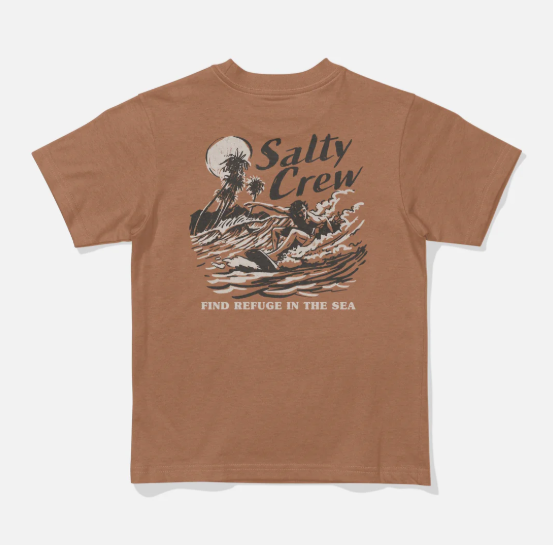 The Surf Camp Toddler SS Tee in Sierra is made from 100% Cotton Jersey. It features a rib-knit neckband and screen printed graphics on the front and back.