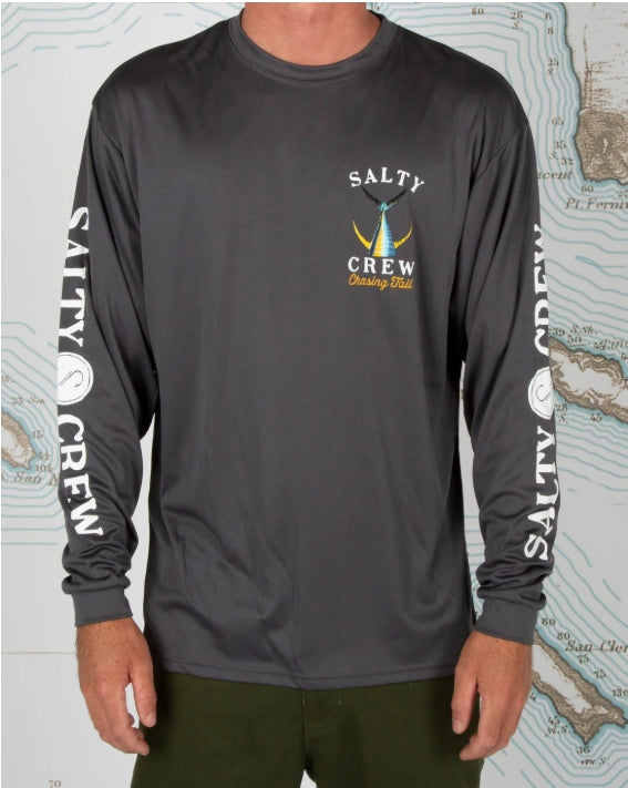 The Tailed Long Sleeve Sunshirt in Charcoal is a lightweight performance top made from quick-drying, moisture-wicking fabric with built-in UPF protection. Designed for all-day comfort in warm conditions, it features long sleeves for added coverage, a crew neckline, and a regular fit for easy layering. The shirt offers breathability and durability, making it a versatile choice for on and off the water.