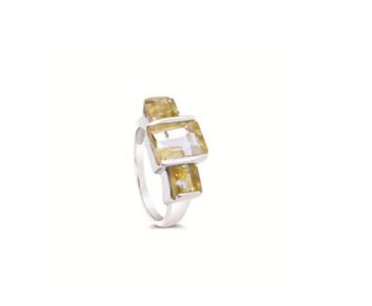 Stones & Silver Stirling Silver 3 Stone Facet Citrine Ring 10mm