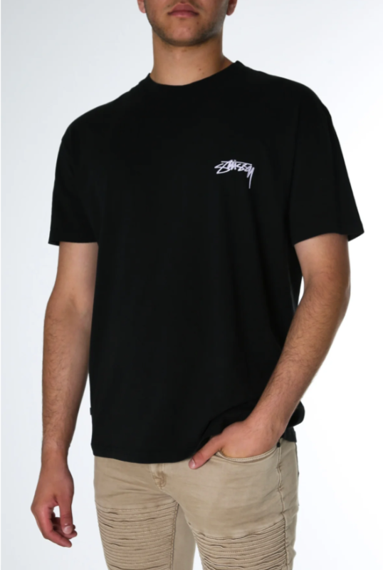 The Stussy Shadow Script SS Tee in Pigment Black is a men's short sleeve tee with rib neckband. Featuring screen printed logo at left chest & back. Constructed from 100% Cotton Jersey.
