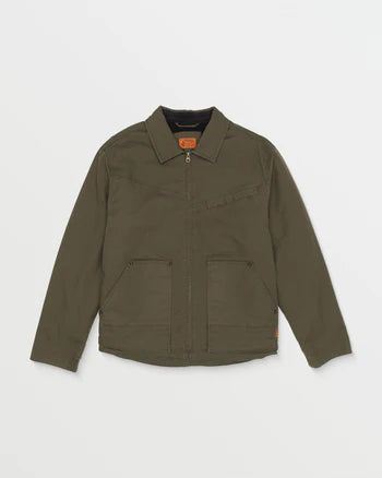The Workwear Heavy Jacket brings Volcom style and rugged durability to a classics work coat. This oversized trucker-inspired piece blends durability and comfort with its cotton-poly-elastane fabric and corduroy lining. Reinforced pockets, asymmetrical yoke, and curved tail add functional flair. With multiple storage options and our signature Volcom Workwear label, this jacket is heavy duty and super functional. Featured here in wren.