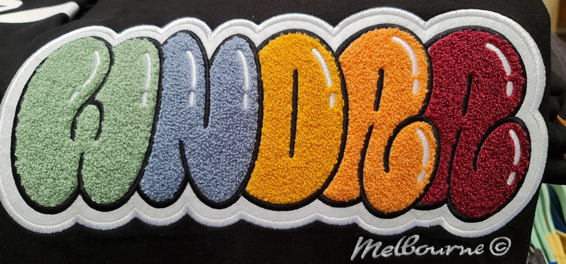 - Chenille patch branding on the front