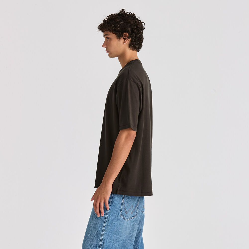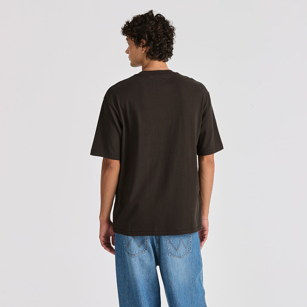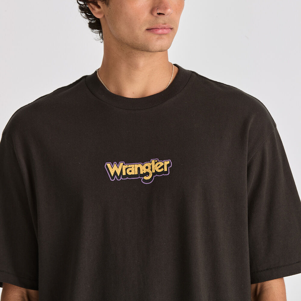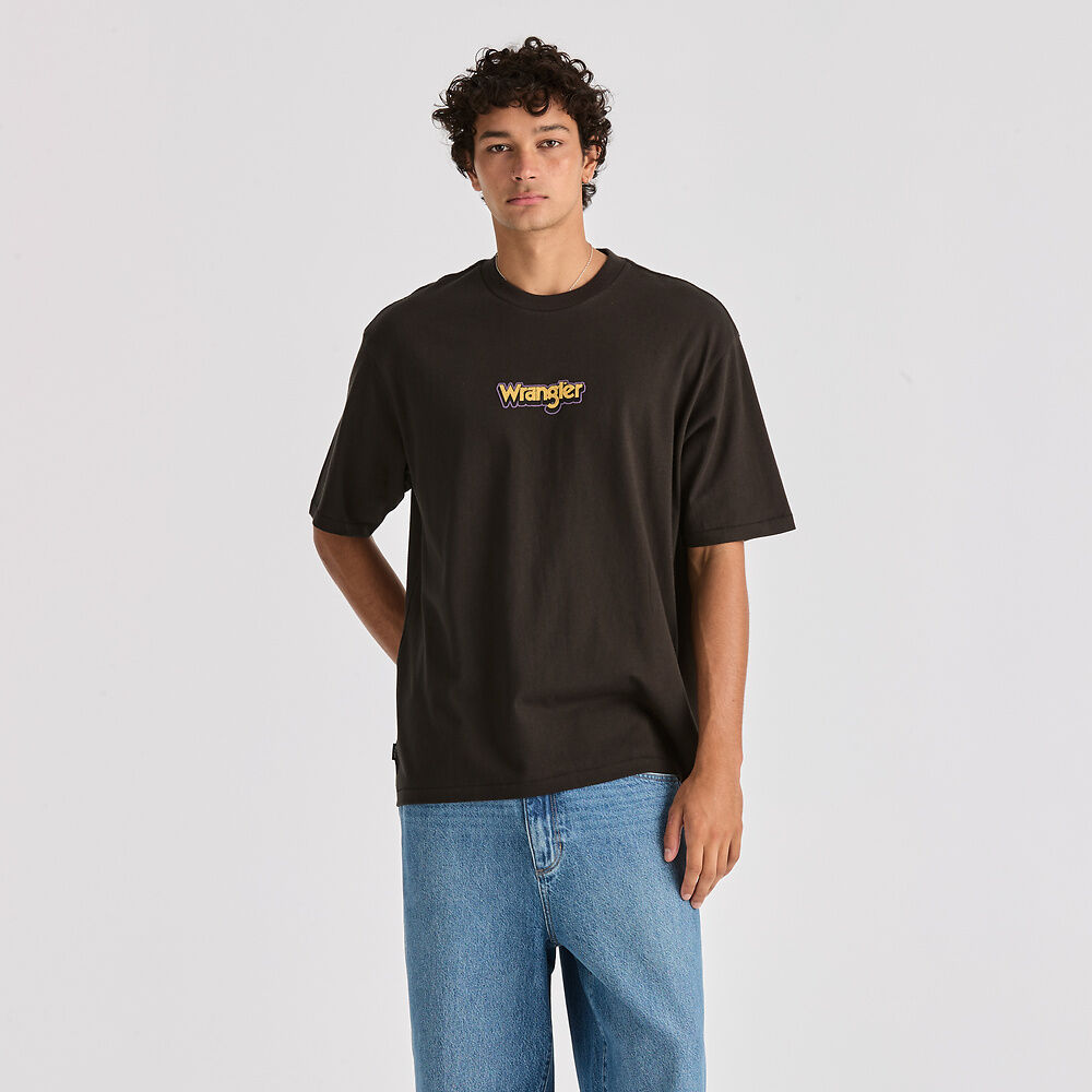 The Slacker Tee silhouette is wrangler's baggiest, loose fitting tee. Designed to sit off shoulder and relaxed through the body. Crafted in a heavy weight, recycled cotton with a soft hand feel. Featuring a centre chest Wrangler logo graphic.