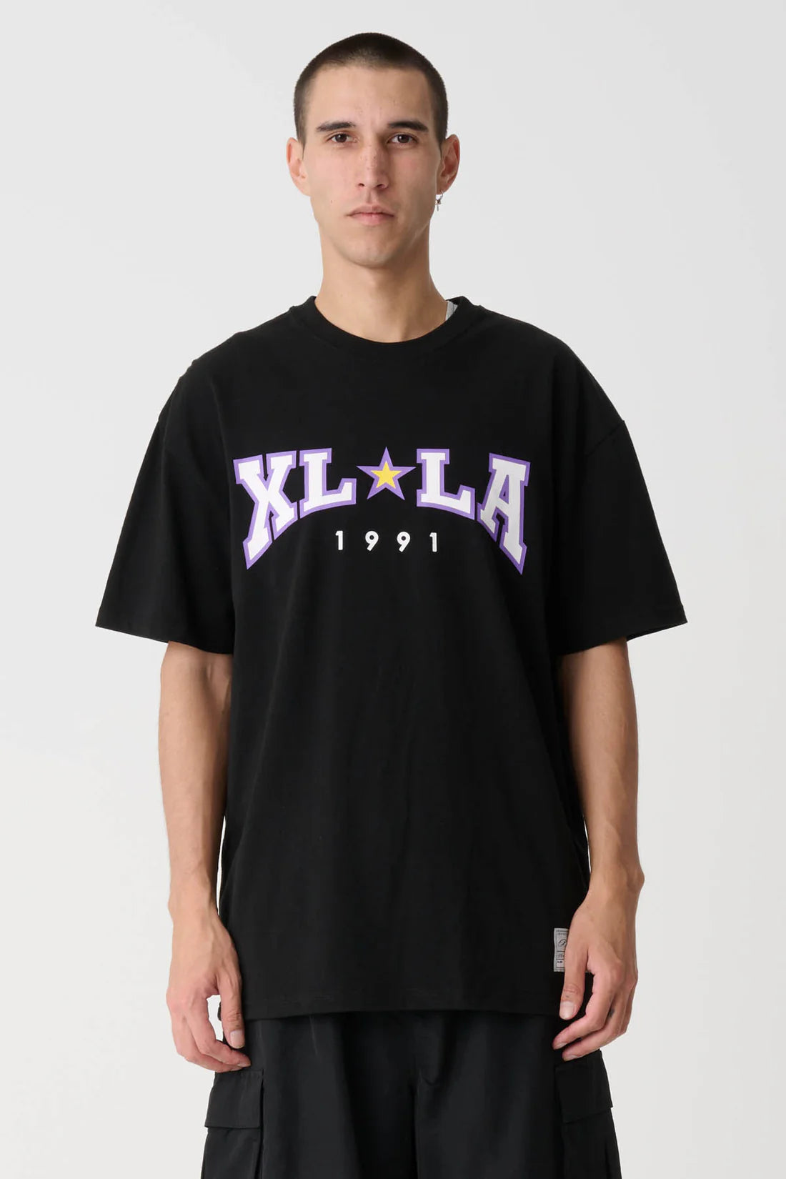 The XL LA 91 shortsleeve crewneck tee in Black is a custom box-fit, constructed from a combed cotton jersey.