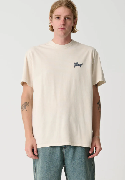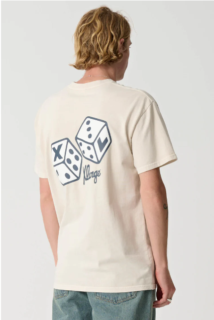 The XL Dice shortsleeve crewneck tee in White is a custom box-fit, constructed from a combed cotton jersey. This garment has been individually dyed, producing a one-of-a-kind result. Wash separately first.